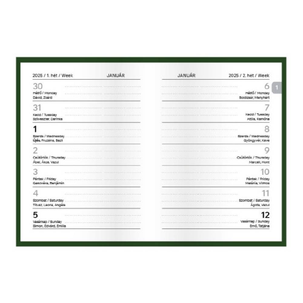 - Kéthetes beosztás (egy oldalpár egy hét napjai)
