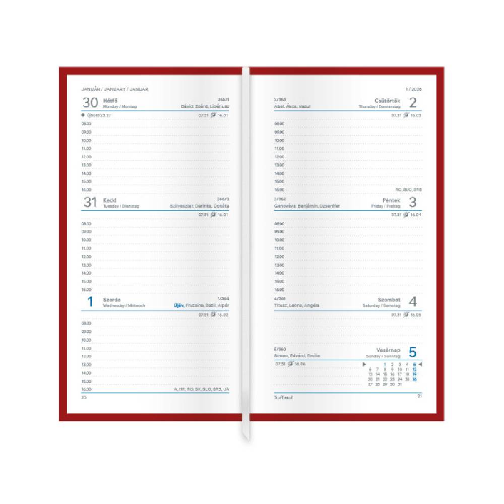 A Traditional heti beosztású, álló zsebnaptár a klasszikus elegancia megtestesítője