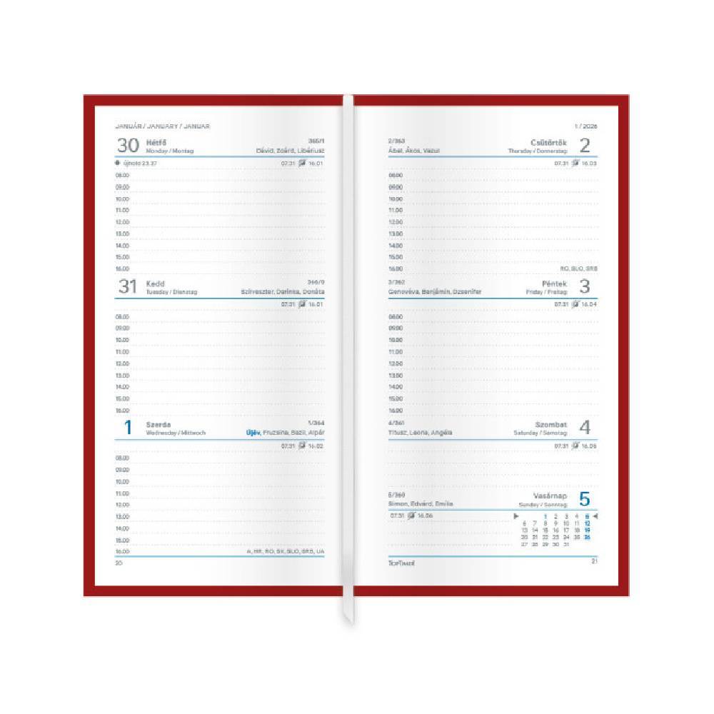 - A Traditional heti beosztású, álló zsebnaptár a klasszikus elegancia megtestesítője