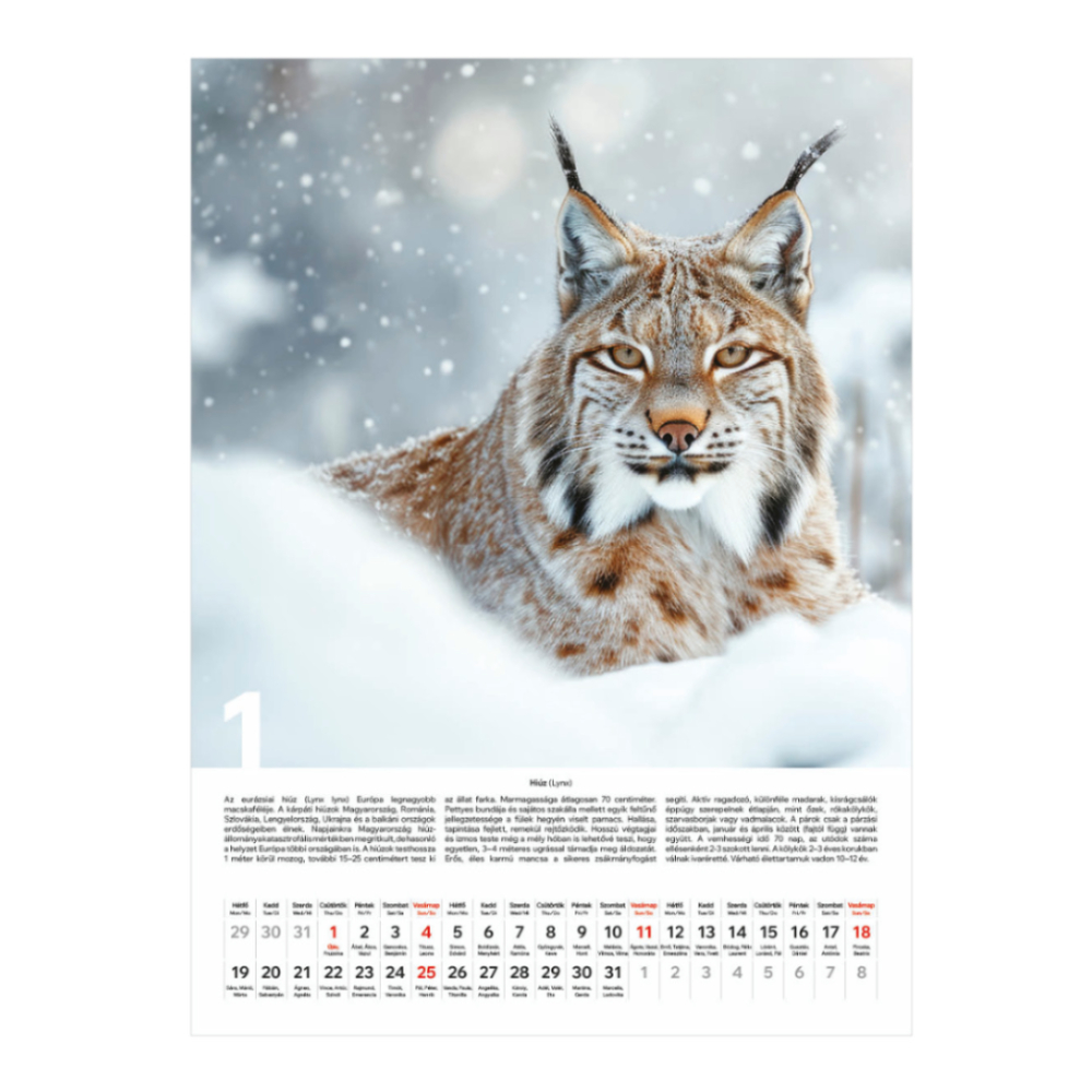 A Vadászat falinaptár lenyűgöző fotókat tár Ön elé a magyarországi vadászható fajokról. Minden hónapban megismerhet egy új fajt, az utolsó oldalon pedig a vadászati idénytáblázat friss változata látható. A naptár tökéletes ajándék minden vadásznak, aki értékeli a természetet és a vadászat hagyományait.