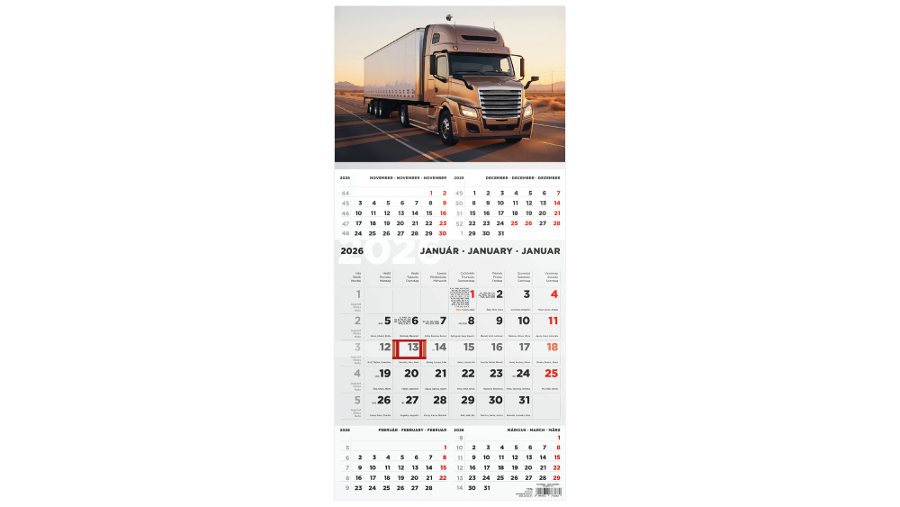 T076 Speditőrnaptár 1 tömbös, Kamion fejkartonnal - 2026