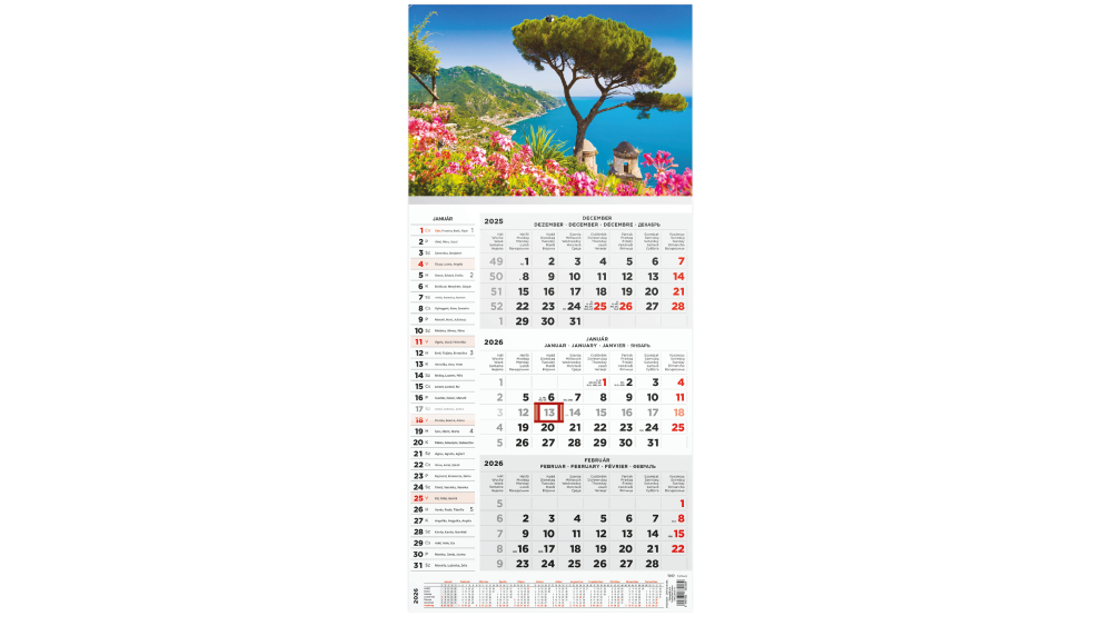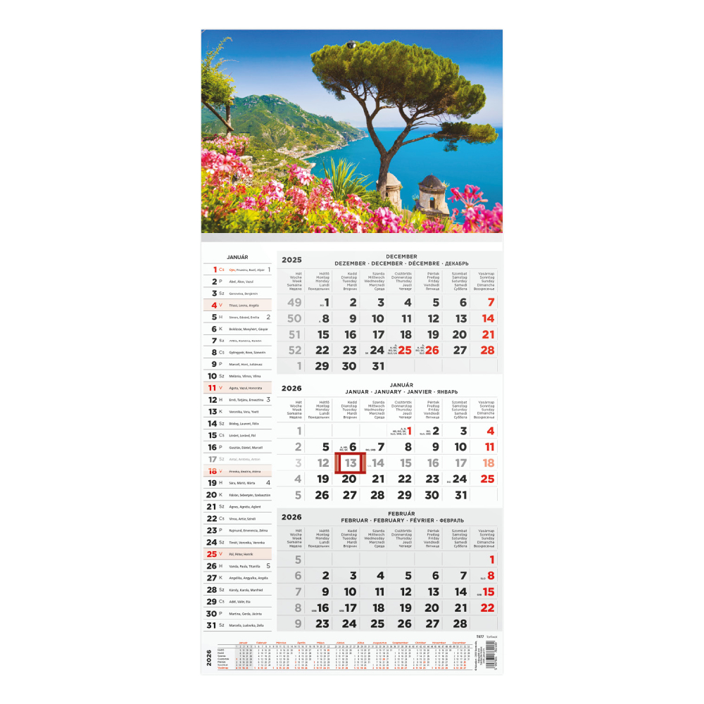 Ez az 3 hónapos naptár tökéletes választás mindazoknak, akik a terveikhez egyszerre 3 hónapot szeretnének látni (az aktuális hónap névnapokkal). A naptárban egyértelműen láthatja a fontos dátumokat, eseményeket és határidőket, így könnyedén megtervezheti a teendőit.