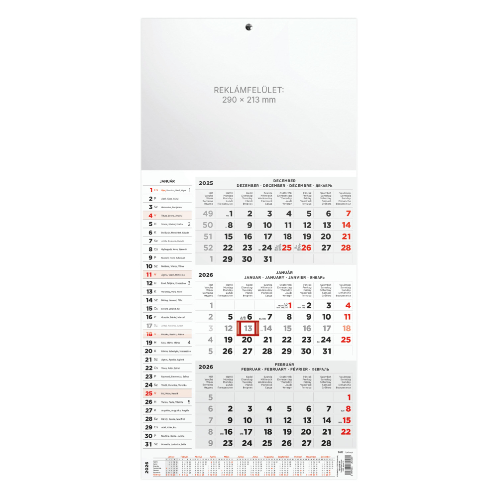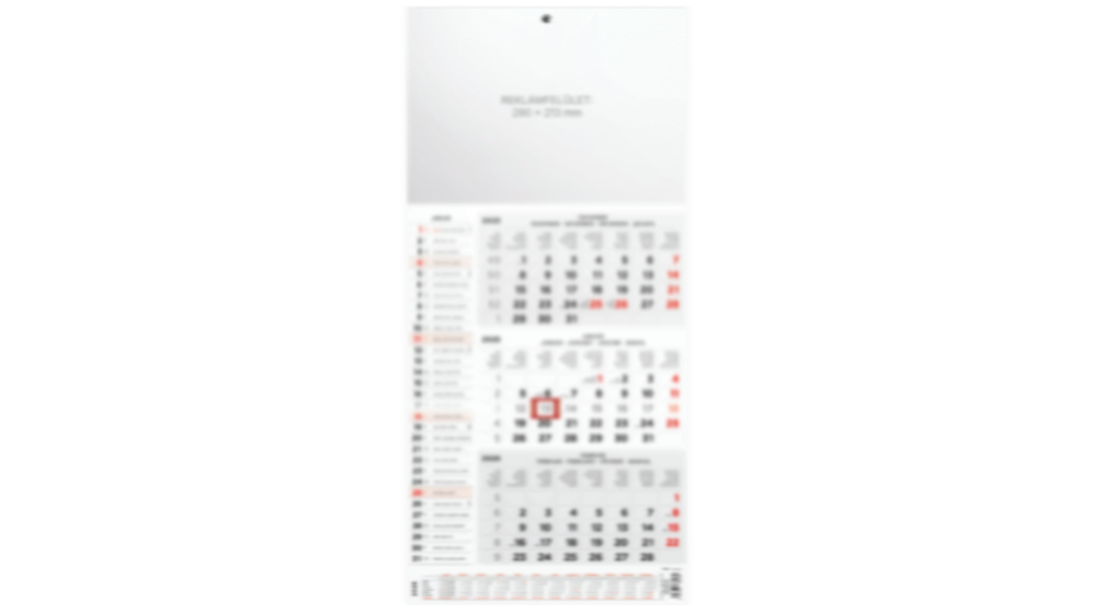 Ez az 3 hónapos naptár tökéletes választás mindazoknak, akik a terveikhez egyszerre 3 hónapot szeretnének látni (az aktuális hónap névnapokkal). A naptárban egyértelműen láthatja a fontos dátumokat, eseményeket és határidőket, így könnyedén megtervezheti a teendőit.