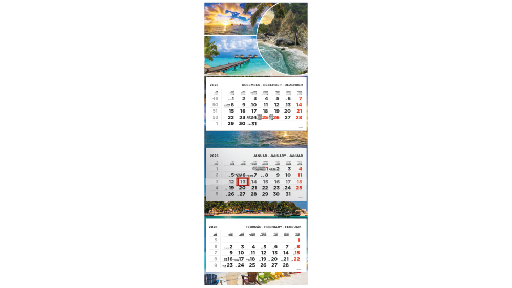 T080 Speditőrnaptár 3 tömbös, Beach hátkartonnal - 2026