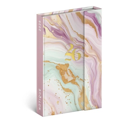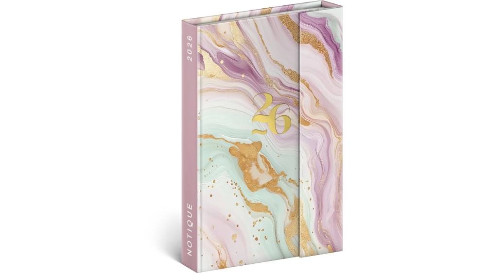 Reálszisztéma Heti beosztású, mágnessel záródó határidőnapló, 10,5 x 15,8 cm Pink Marble (2026)