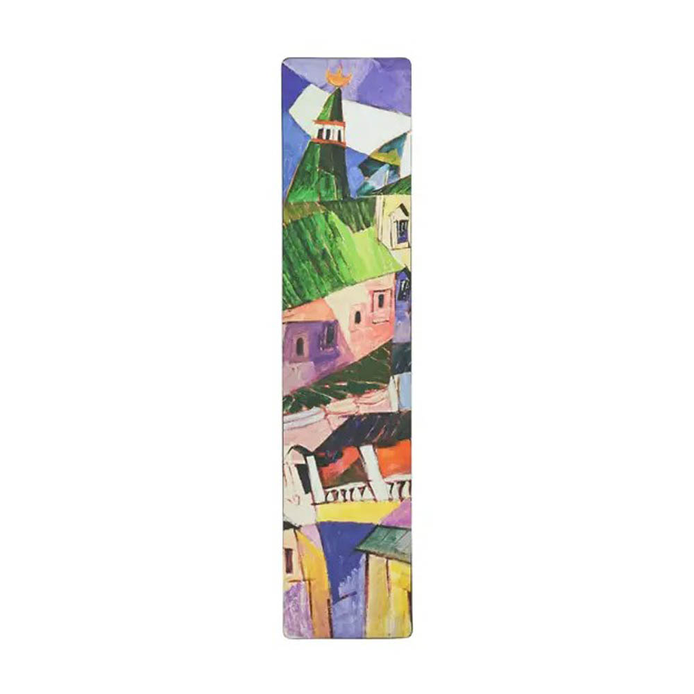 Ezen a könyvjelzőn Artistarkh Lentulov orosz kubista festűművész 'Kolostor' című munkájának részlete látható. A könyvjelzőt dombornyomás teszi különlegessé.