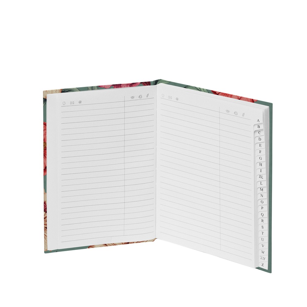 Keményfedelű, klasszikus cím,- és telefonjegyzék.