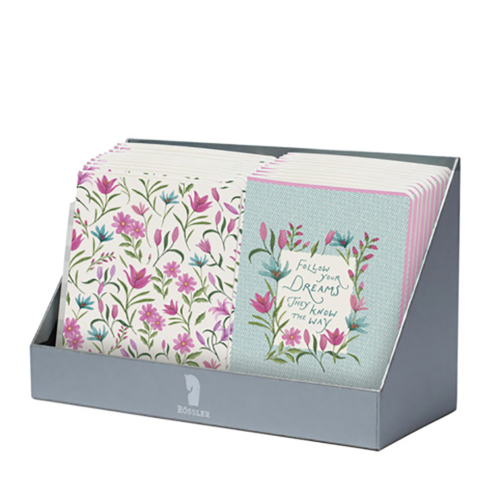 Rössler füzet, A5, 36 oldalas, pontozott, tűzött, rózsaszín tavaszi virágos, Cornwall