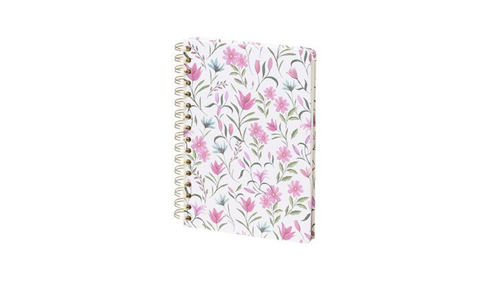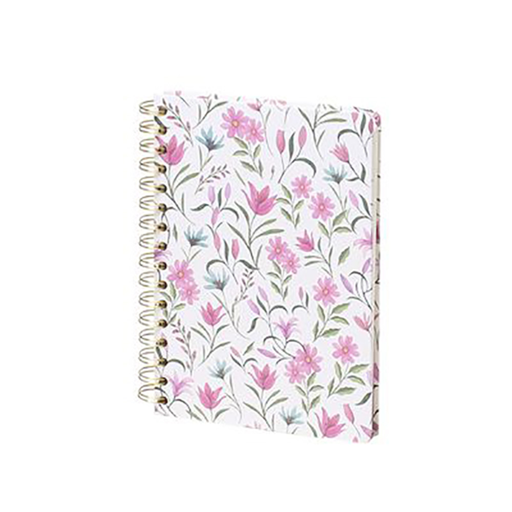 Rössler jegyzetfüzet, A5, 240 oldalas, sima, spirálos, rózsaszín tavaszi virágos, Cornwall