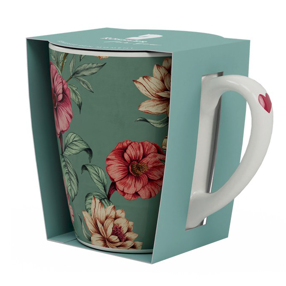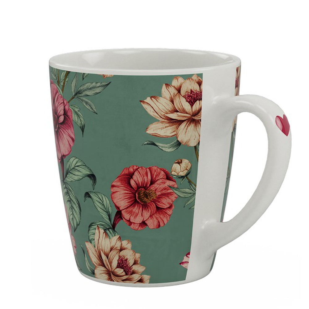 A bögre magassága 10.5, szájának átmérője 8.5 cm.
