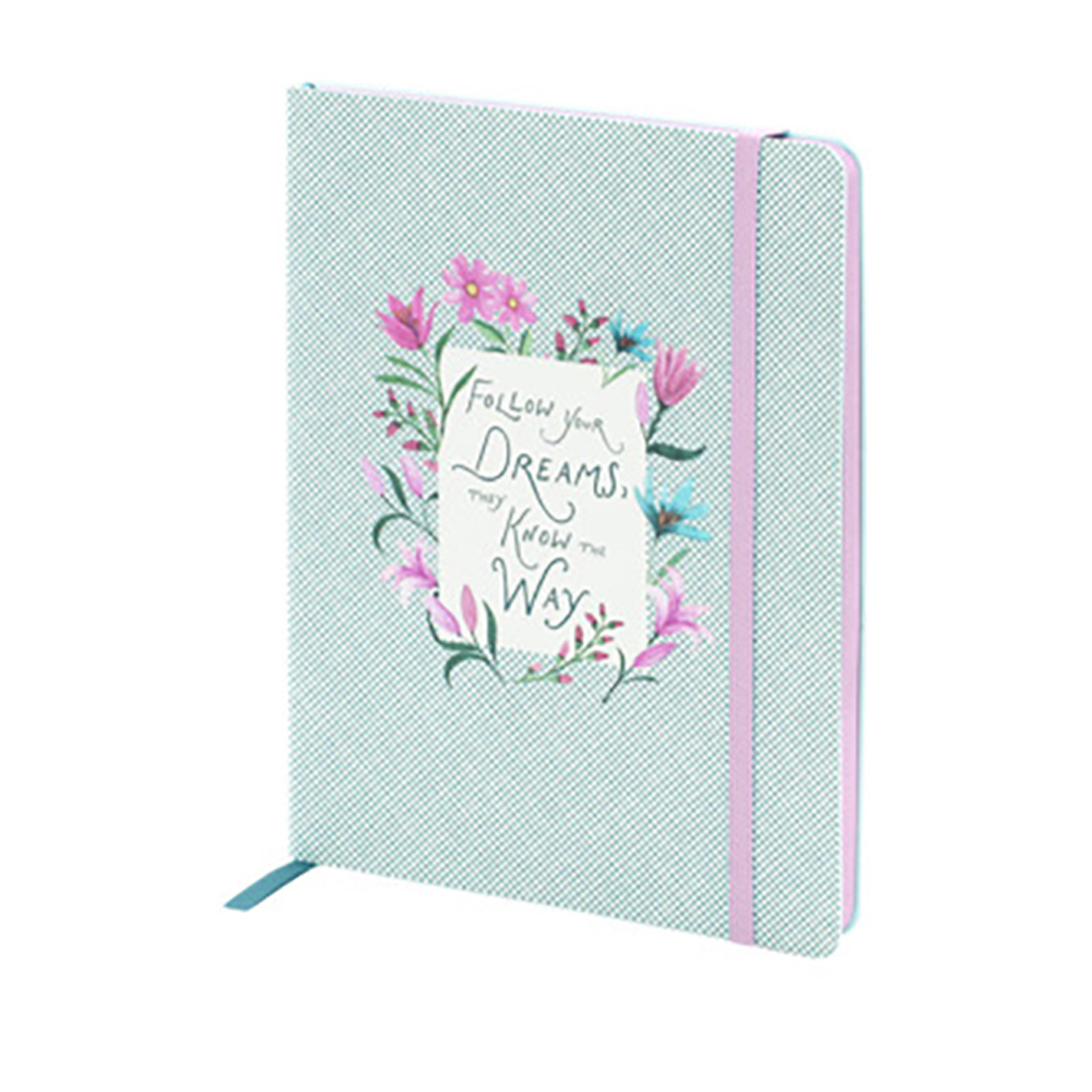 Rössler notesz (20x15 cm, 256 old, von. kötött, gumis) halványzöld tav.virágos, Cornwall (6)
