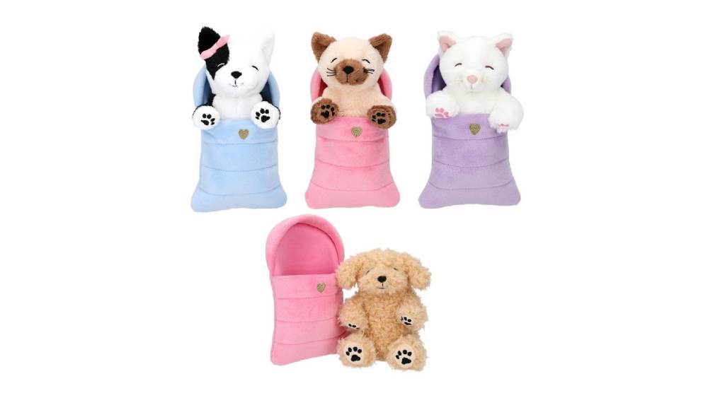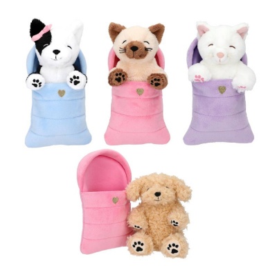 TOPModel plüss kutya, macska, hálózsákban, 6-féle